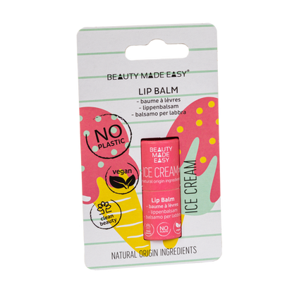 Natuurlijke en veganistische lippenbalsem in push-up papieren kokerverpakking.