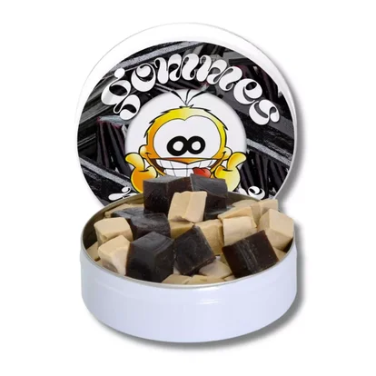 Deze snoepjes combineren de rijkdom van drop met de fluweelzachte zoetheid van vanille, wat zorgt voor een subtiele en evenwichtige smaak die liefhebbers van verfijnd snoepgoed zal bekoren.