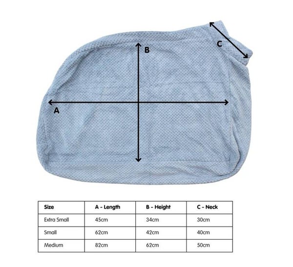 De eenvoudigste en meest effectieve manier om modder en nattigheid uit de jas van je harige vriend te verwijderen na hun avonturen! Het is perfect om uw huis en auto schoon te houden na een modderige wandeling, waarbij uw huisdier snel droogt in de droogzak. U ritst de tas eenvoudig om uw huisdier heen, gebruikt de klittenband om hem vast te zetten en u kunt beginnen met wrijven! Uw huisdier zal droog en warm zijn, en uw autostoelen of vloer zullen vrij zijn van rommel omdat het vocht door de tas wordt geabsorbeerd. De tas is gemaakt van hoogwaardig, superzacht microvezelmateriaal voor een uitstekende absorptie en comfort voor uw huisdier! De droogzak wordt aangeboden in drie maten: extra small, small en medium