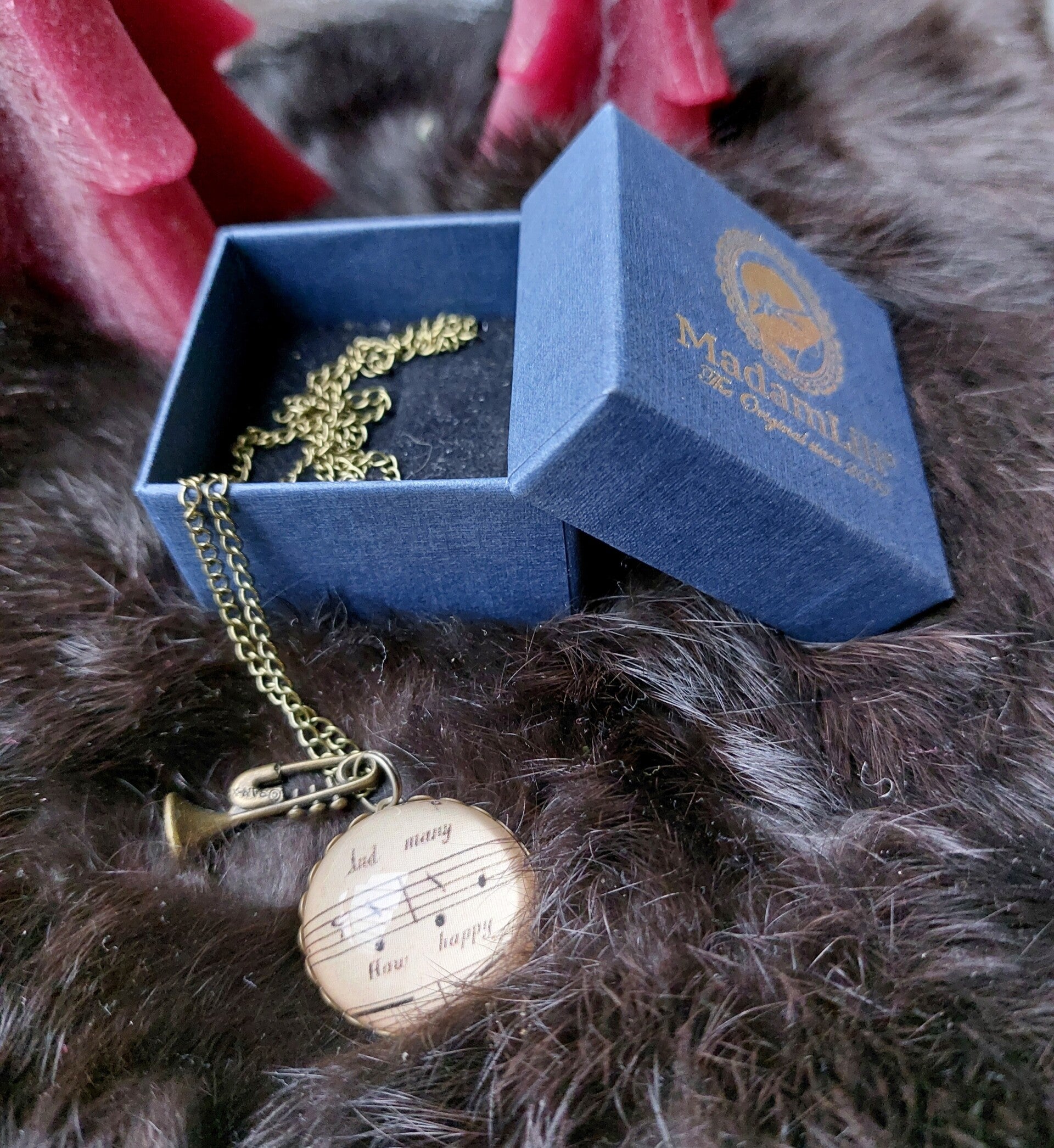 Muziekblad hanger ketting met trompet vintage stijl