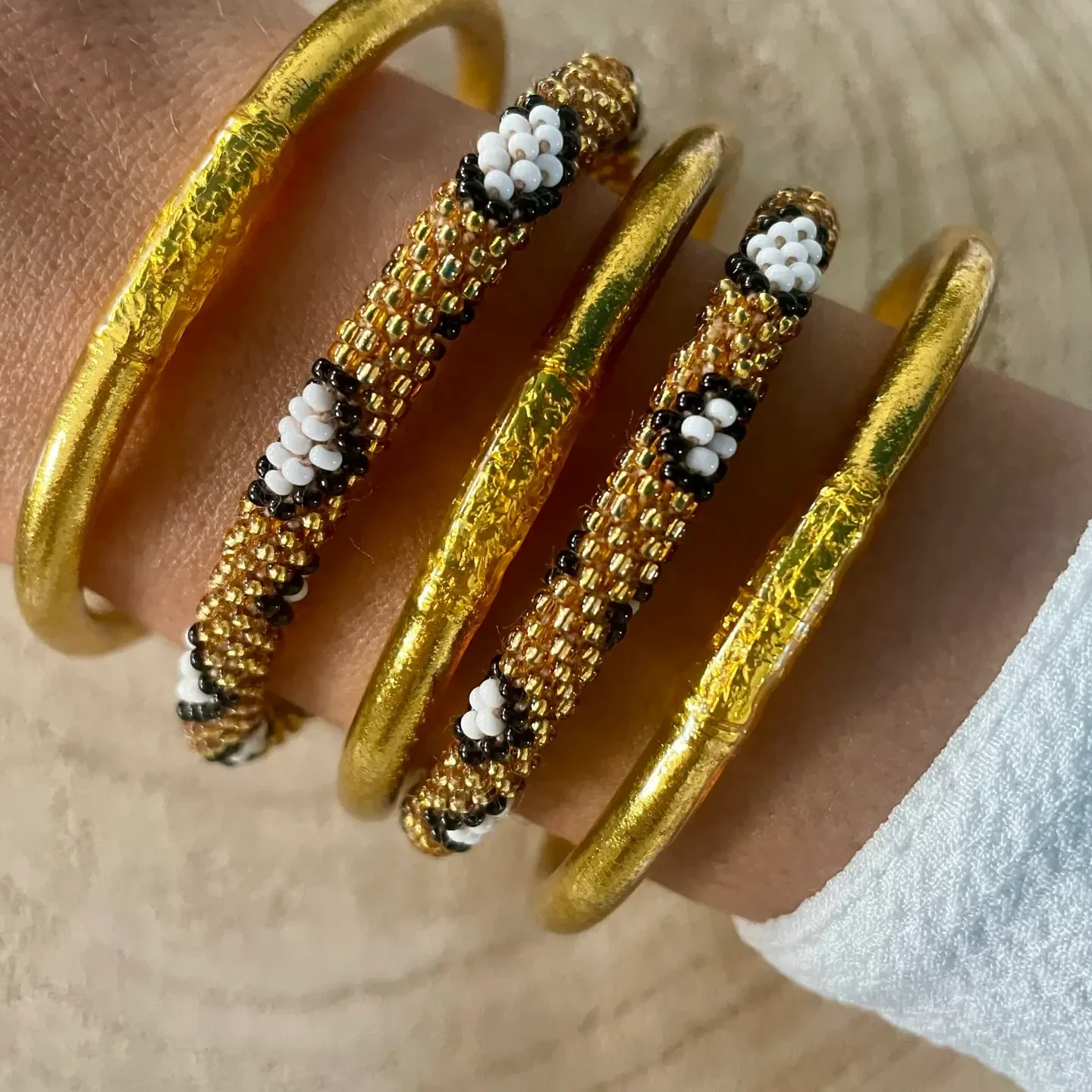 Elk stuk wordt aan de voet van de Everest gemaakt door lokale ambachtslieden, met kralen uit Tsjechië en Azië, wat zorgt voor een unieke en authentieke stijl.
