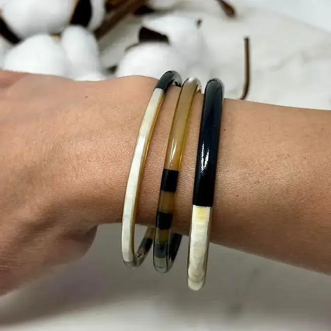 🌟 Breng een natuurlijke en elegante touch aan uw aanbod met deze armband van buffelhoorn, middelgroot en rond, met een verfijnd design.