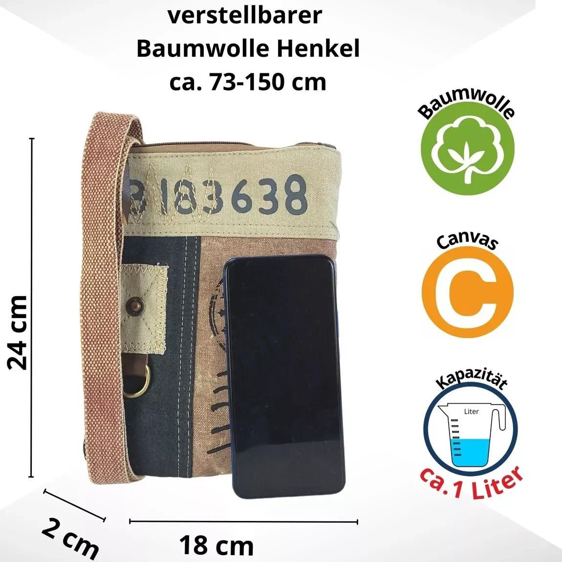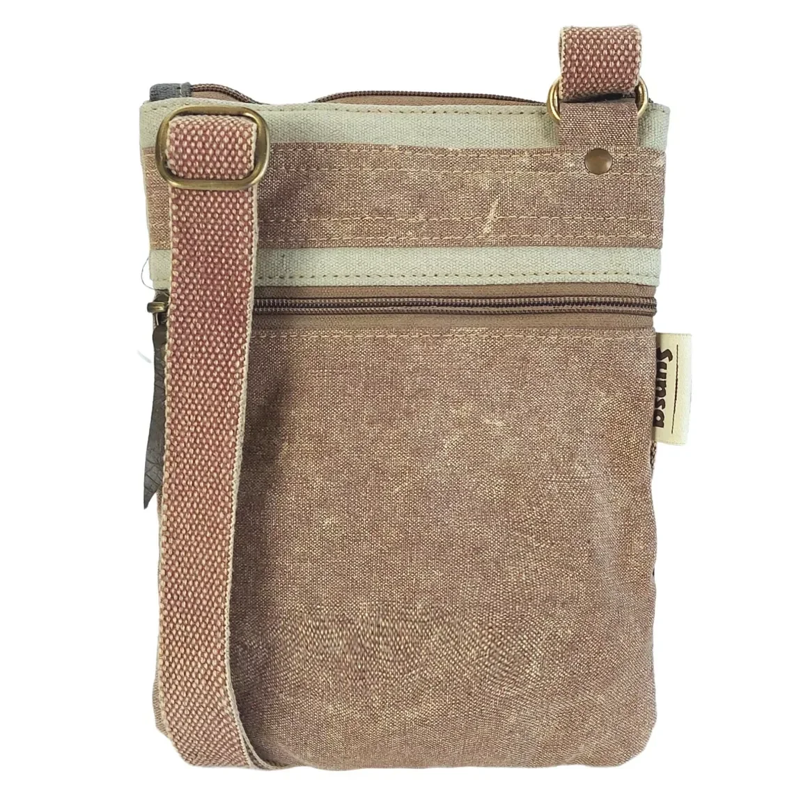 Sunsa women's small shoulder bag, made of canvas & leather, vintage retro style.