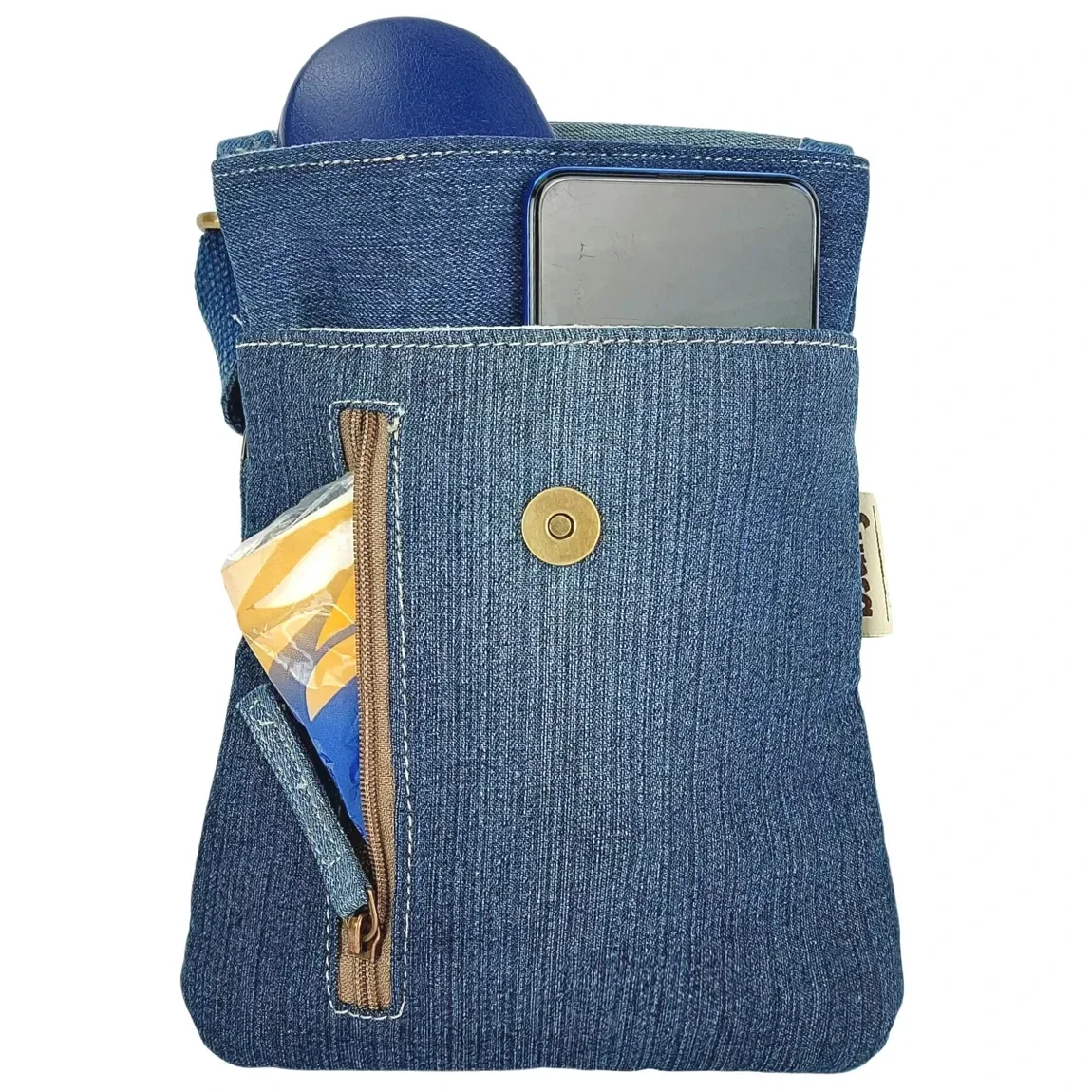 Sunsa Women's Sustainable Shoulder Bag,made from recycled jeans & woven cotton, vintage retro style.