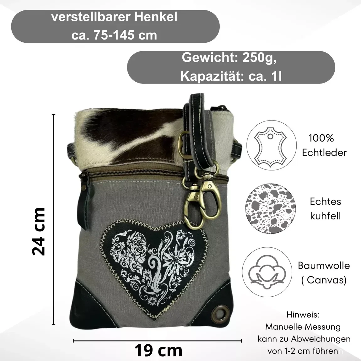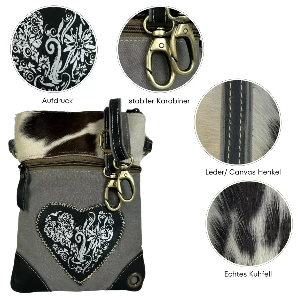 heart & deer design - crossbody bag made of canvas & cowhide.