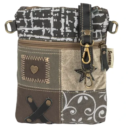 Sunsa Women's Sustainable Shoulder Bag,made from recycled jeans & woven cotton, vintage retro style.